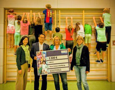 Am 16.10.2025 war es soweit: Die Geschäftsführerin Fr. Tang-Rupp der Allianz für Kinder in Bayern e.V. überreichte dem JuKi einen symbolischen Scheck über 2.500 €. Die Allianz für Kinder e.V. unterstützt bedürftige Kinder und Jugendliche in Bayern, die aufgrund ihrer geistigen, körperlichen, seelischen oder sozialen Benachteiligung besondere Förderung benötigen. Die Spenden wurden im Rahmen des Sommerfests für Mitarbeiter*innen der Allianz in München gesammelt. Mit diesem Betrag werden Kinder mit besonderem Förderbedarf bzw. in finanziellen Notlagen bei der Teilnahme an Sportkursen unterstützt. Wir bedanken uns sehr herzlich!